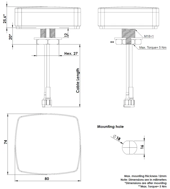 Connectivity is achieved via dual SMA Male interfaces with 300 mm L-100 cables, providing reliable and flexible installation options. As a product of 2J, a global leader in antenna solutions, this antenna benefits from advanced engineering and customisation capabilities. 2J’s commitment to innovation and customer service has positioned it as a trusted partner for high-profile companies, including Porsche and Sagem, further ensuring the antenna's quality and performance.